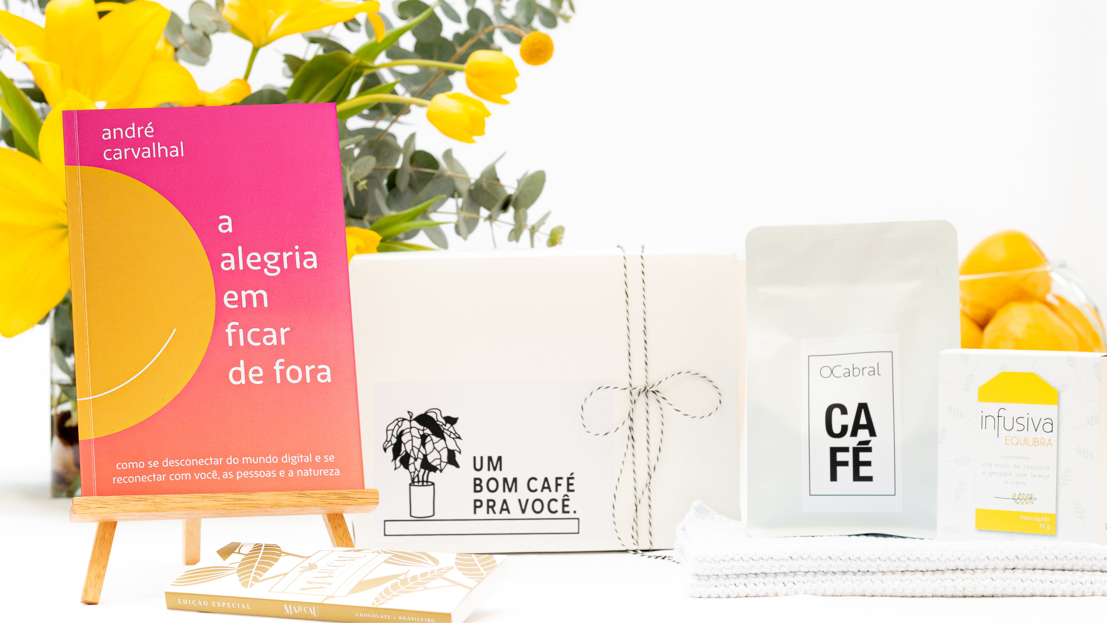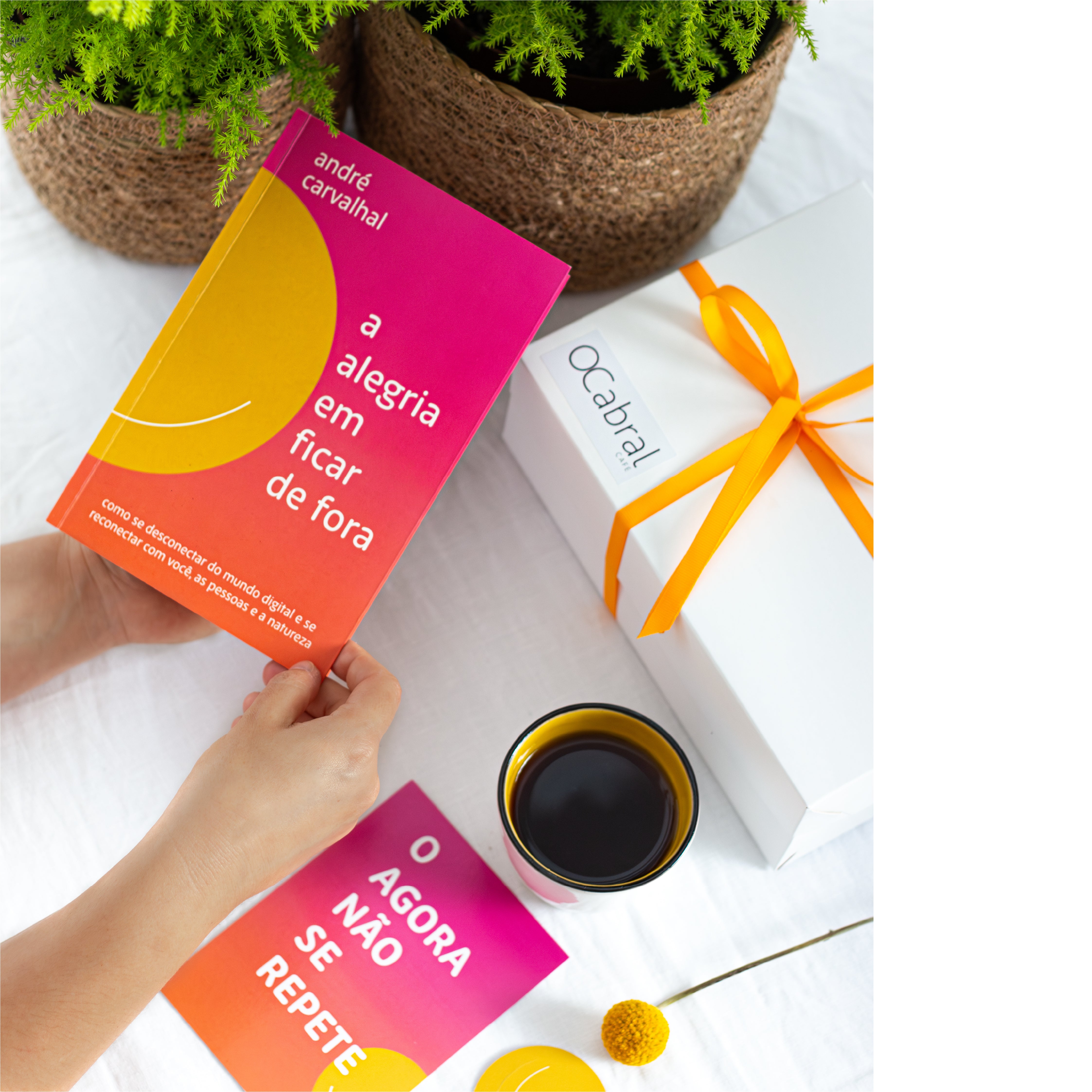 Um excelente café e um livro com reflexões sobre despertar para uma forma de viver o presente com mais qualidade sem sofrer tanto com a conexão diária.